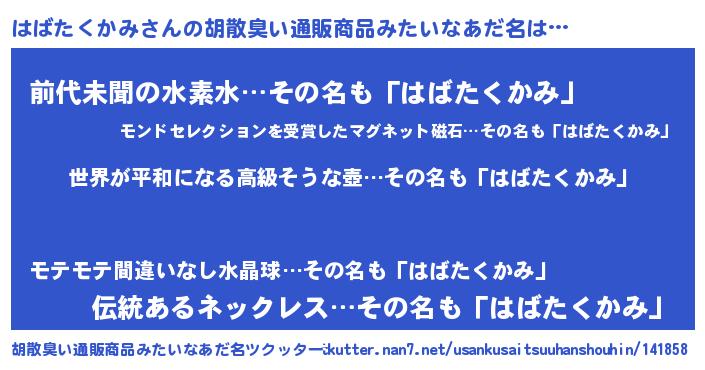 | ヘコむあだ名 | 『なまこ酢』『はばたくかみ(苦笑)』 |