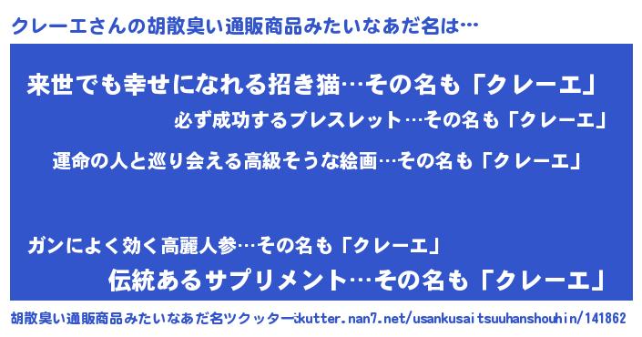 | ポケモン風あだ名 | 『クレーダネ』『ゼニクレ』 |