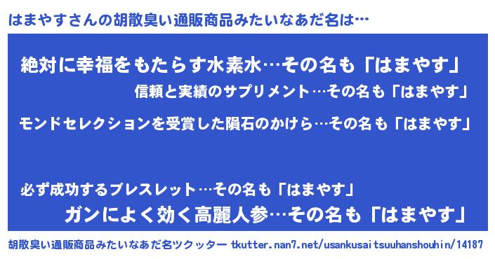 | ヘコむあだ名 | 『はまやす(震え声)』『はまっ子』 |