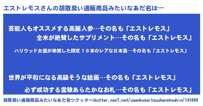 | 意味不明あだ名 | 『住所不定無職エストレモス(47歳)』 |