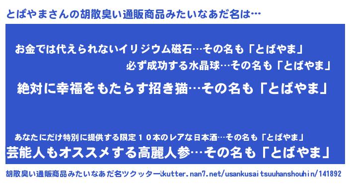 | ヒーロー風カッコイイあだ名 | 『ネオトバヤマ』『慈愛の使者とばやま』 |