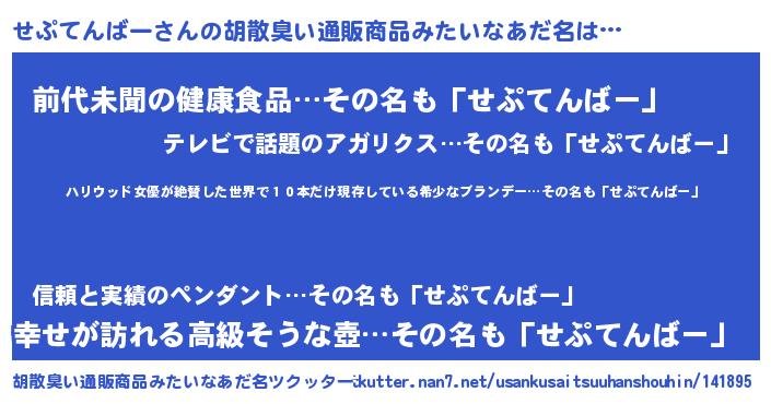 | 意味不明あだ名 | 『住所不定無職せぷてんばー(86歳)』 |