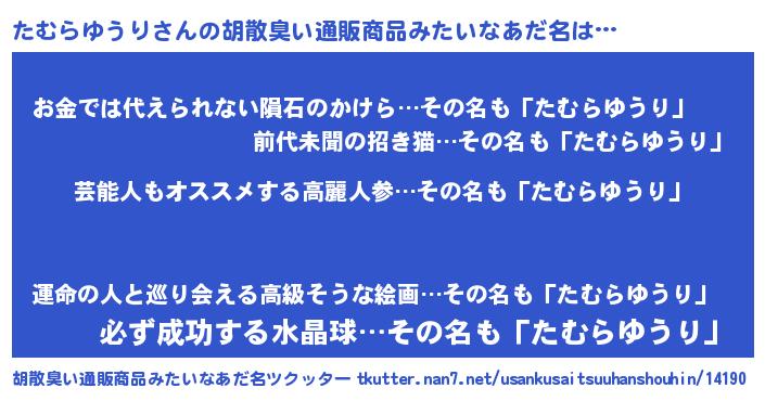 | 肩書あだ名 | 『たむらゆうり閣下』『たむらゆうり助手』 |