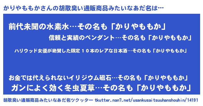 | ヘコむあだ名 | 『かりやももか(笑)』『かりっぺ』 |