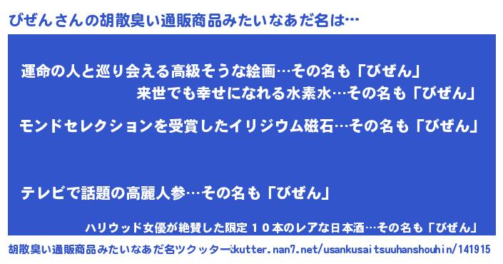 | ヒーロー風カッコイイあだ名 | 『天空の使者びぜん』『仮面ビゼダー』 |