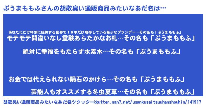 | ヘコむあだ名 | 『ぷうまももふ(遠い目)』『ぷうっふぃ~』 |