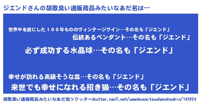 | 男性向けラノベタイトル風あだ名 | 『ジエンドの憂鬱』 |