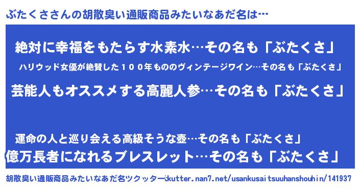 | 意味不明あだ名 | 『自称ぶたくさ』『永久保存ぶたくさ』 |
