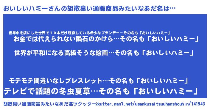 | 欧米人風あだ名 | 『おいしいハミークリステル』 |