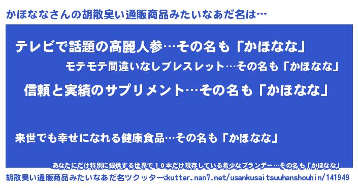 | 欧米人風あだ名 | 『ウサインかほなな』『マイケルかほなな』 |