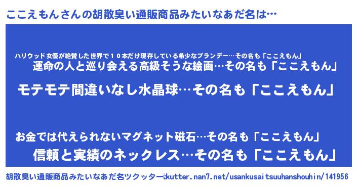 | 女子向けラノベタイトル風あだ名 | 『ここえもん姫と円卓の騎士』 |