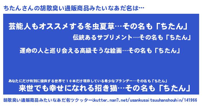 | 意味不明あだ名 | 『ちたんフォーエバー』『自称ちたん』 |