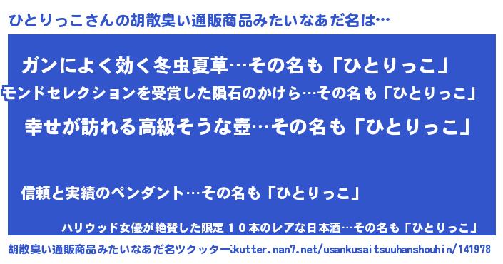 | 意味不明あだ名 | 『ひとりっこフォーエバー』 |