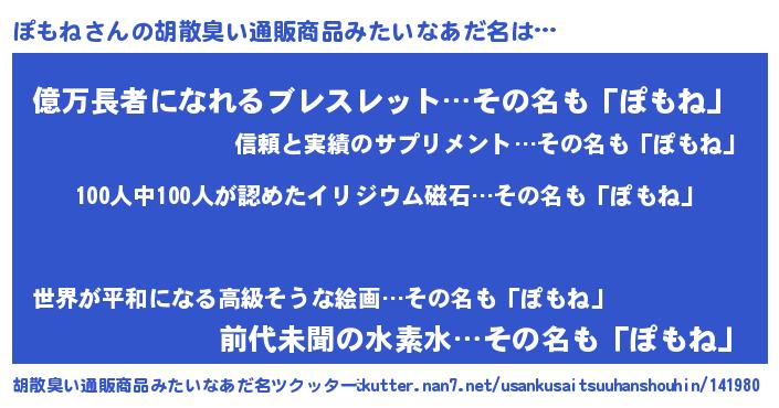| ヘコむあだ名 | 『ぽもにゅー』『ぽもね(小並感)』 |