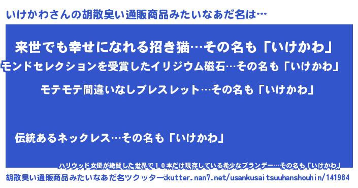 | 意味不明あだ名 | 『ペロリンいけかわ』『永久保存いけかわ』 |