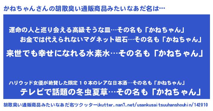 | 意味不明あだ名 | 『永久保存かねちゃん』『自称かねちゃん』 |