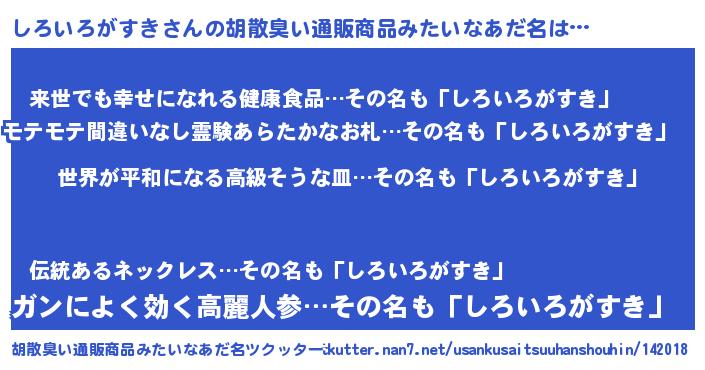 | 女子向けラノベタイトル風あだ名 | 『シンデレラしろいろがすき家の靴箱館』 |