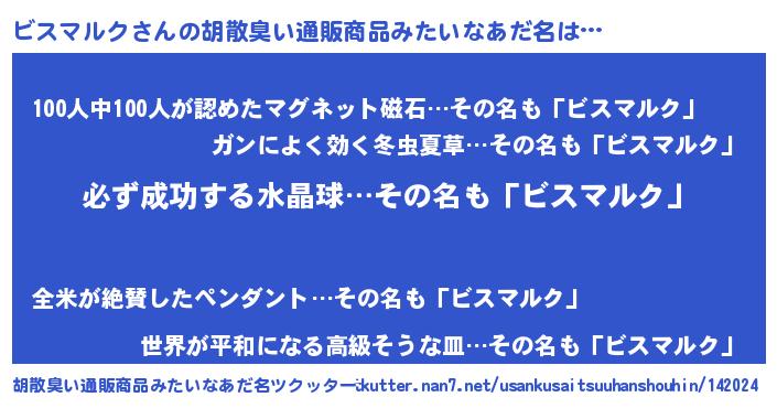 | ヒーロー風カッコイイあだ名 | 『スーパービスマルク』『天弓騎士ビス』 |