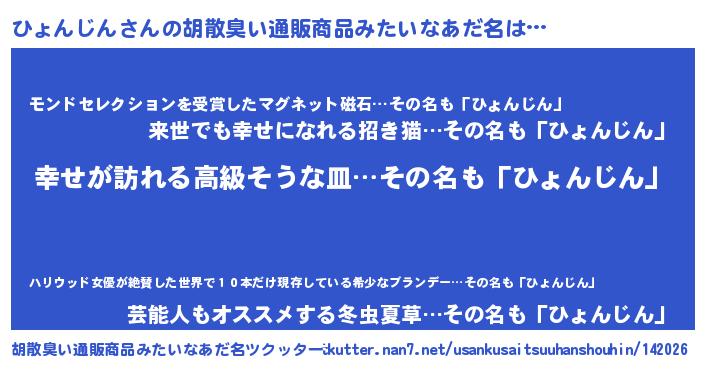 | 欧米人風あだ名 | 『ひょんじんクリステル』 |