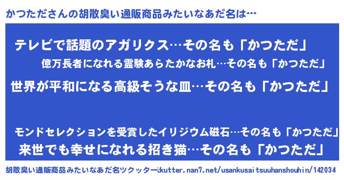 かつたださんの胡散臭い通販商品みたいなあだ名をツクッター!