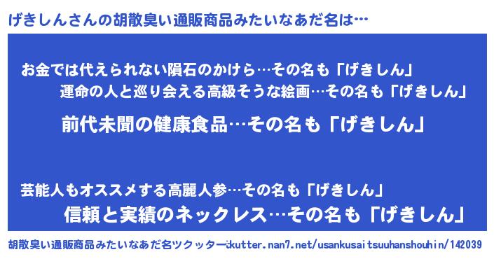 | ヒーロー風カッコイイあだ名 | 『ネオゲキシン』『愛の使者げきしん』 |