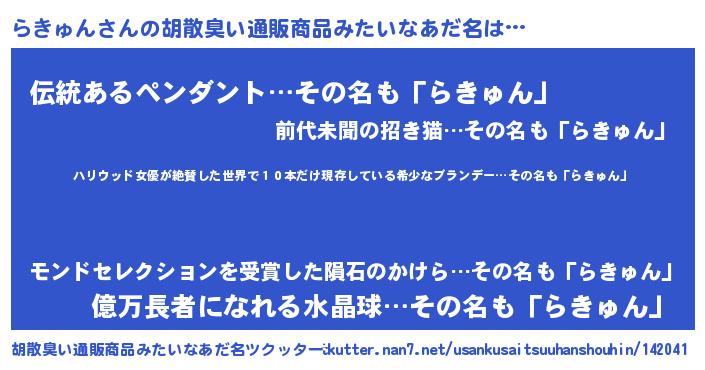 | ヘコむあだ名 | 『らきっぺ』『らきもー』『酢こんぶ』 |