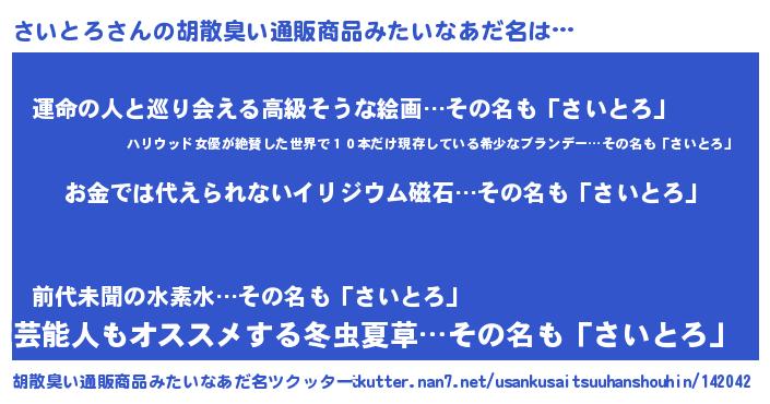 | ヘコむあだ名 | 『豆乳』『さいとろ(笑)』『さいもー』 |