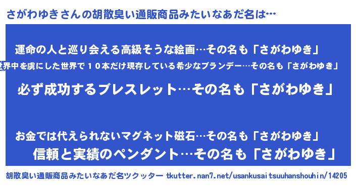 | 男性向けラノベタイトル風あだ名 | 『さがわゆきの憂鬱』 |