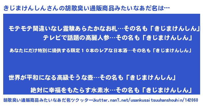 | 意味不明あだ名 | 『住所不定無職きじまけんしん(53歳)』 |