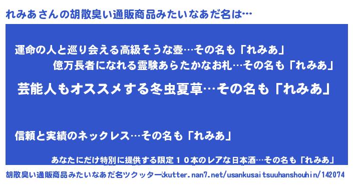 | 意味不明あだ名 | 『自称れみあ』『れみあフォーエバー』 |