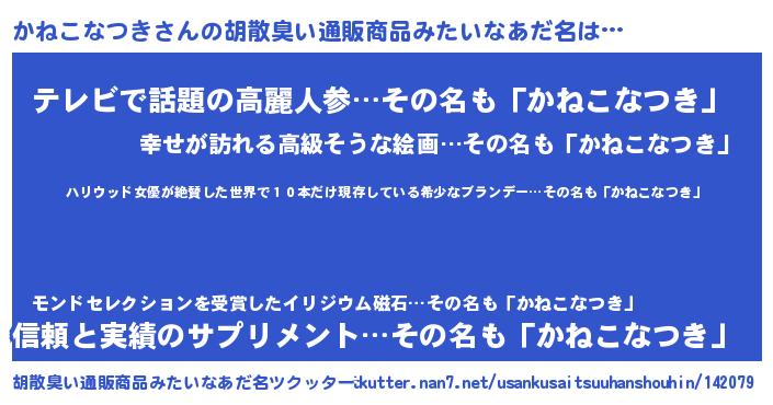 | 欧米人風あだ名 | 『ダレノガレかねこなつき』 |