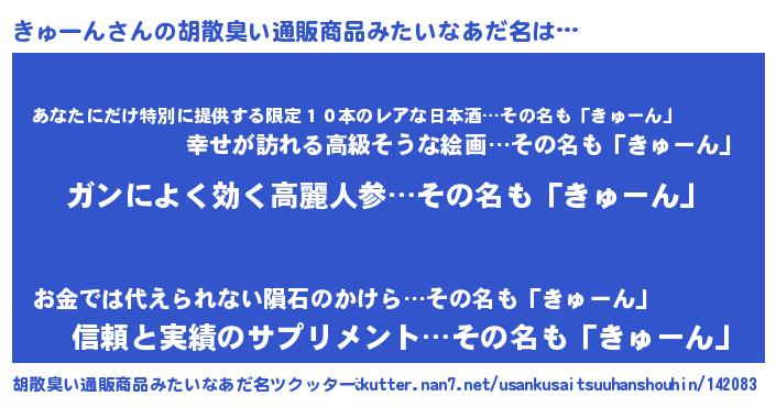 | 意味不明あだ名 | 『自称きゅーん』『きゅーんフォーエバー』 |