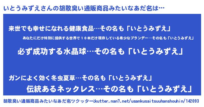 | 男性向けラノベタイトル風あだ名 | 『イトウミズエスレイヤー』 |