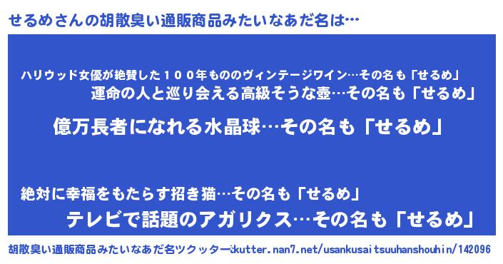 | 意味不明あだ名 | 『ペロリンせるめ』『自称せるめ』 |