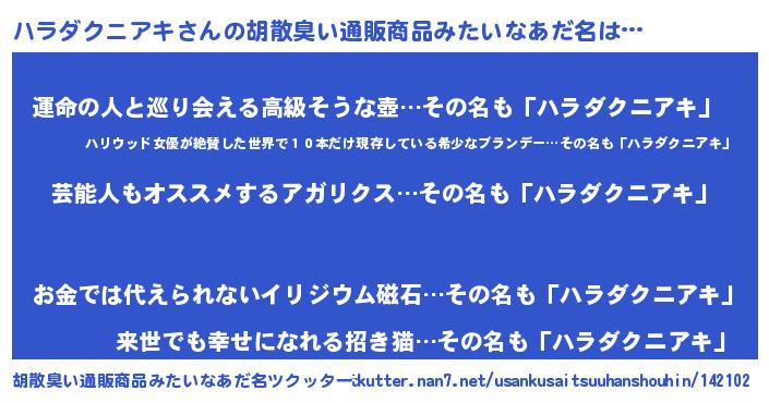 | 肩書あだ名 | 『ハラダクニアキ閣下』 |