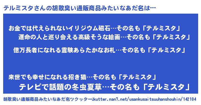 | 意味不明あだ名 | 『ペロリンテルミスタ』『自称テルミスタ』 |