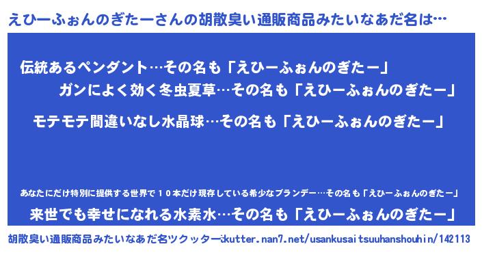 | 男性向けラノベタイトル風あだ名 | 『えひーふぉんのぎたーの憂鬱』 |