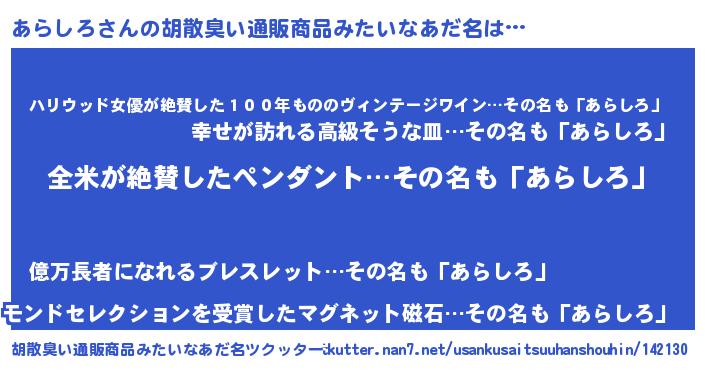 | 意味不明あだ名 | 『とにかく怪しいあらしろ』 |