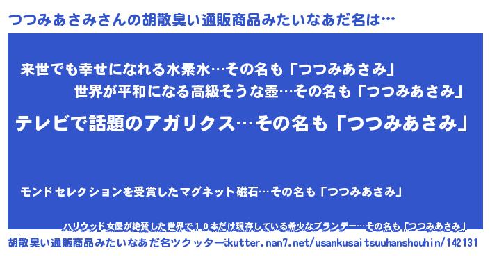 | 意味不明あだ名 | 『自称つつみあさみ』 |