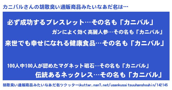| 意味不明あだ名 | 『永久保存カニバル』『ペロリンカニバル』 |