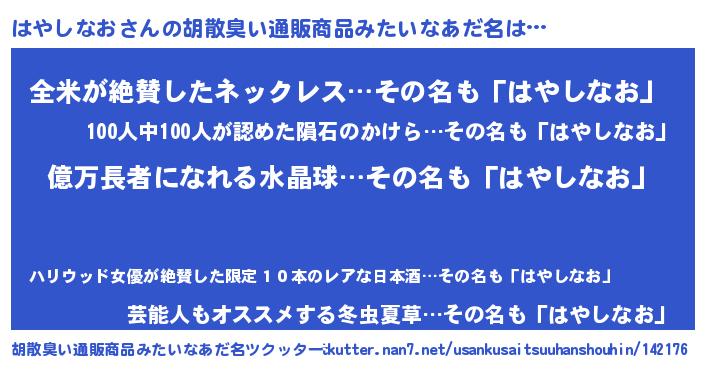 | 意味不明あだ名 | 『ヨモギ科はやしなお属』 |