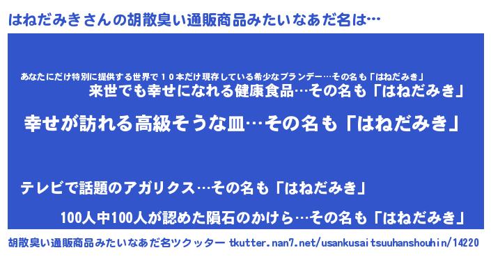 | 意味不明あだ名 | 『はねだみきフォーエバー』 |