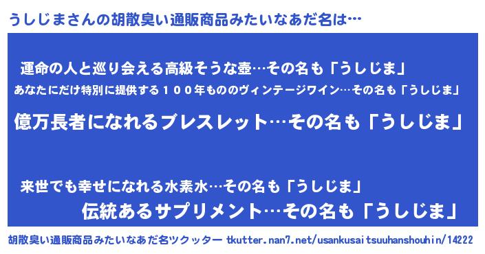 | 恥ずかしいあだ名 | 『プリティーうしじま』『うしっちょ』 |