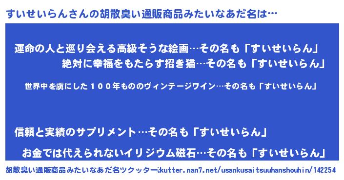 | 意味不明あだ名 | 『住所不定無職すいせいらん(6歳)』 |