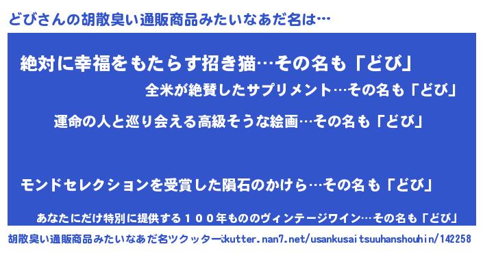 どびさんの胡散臭い通販商品みたいなあだ名をツクッター!