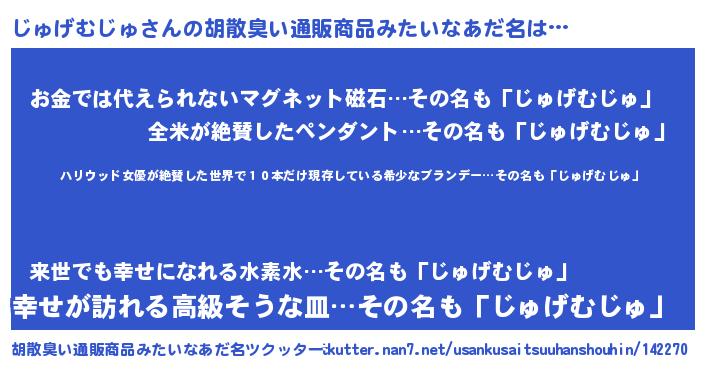 | 男性向けラノベタイトル風あだ名 | 『緋弾のジュゲムジュ』 |