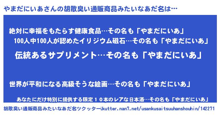 | 意味不明あだ名 | 『とにかく怪しいやまだにいあ』 |