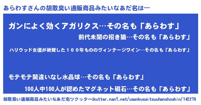 | ヘコむあだ名 | 『あらわす(笑)』『あらふぇ~』 |