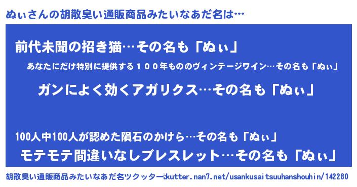 | 意味不明あだ名 | 『自称ぬぃ』『永久保存ぬぃ』 |