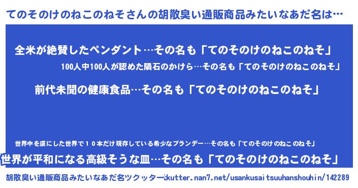 | ヒーロー風カッコイイあだ名 | 『ネオテノソノケノネコノネソ』 |